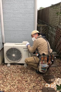本日のエアコン工事は久しぶりに空調服を着ての作業となりました。 エアコンホース穴の貫通から光ケーブルが入っていたため、より慎重な作業になります。 工事後のインターネット接続の確認が必要になってきます。 工事完了後確認をお […]